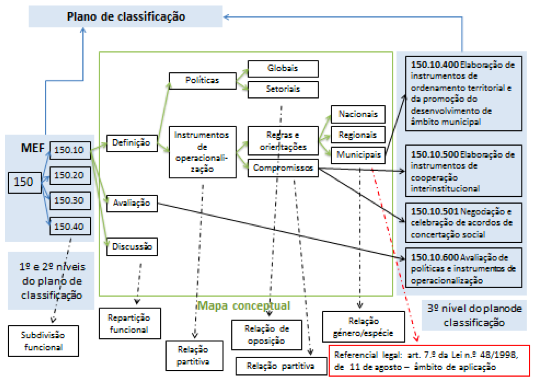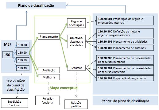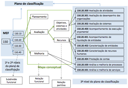 Mapa conceptual - Na primeira partição considerou-se as atividades inerentes à subfunção: “Planeamento”, “Avaliação” e “Melhoria”. Estabeleceu-se uma relação funcional.