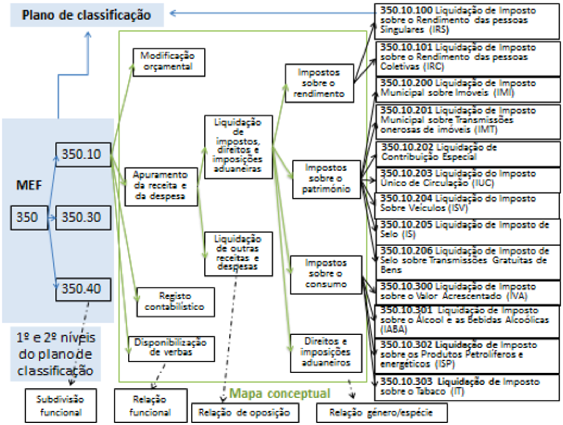 Por sua vez, a “Liquidação de impostos, direitos e imposições aduaneiros” subdivide-se ainda em “Impostos sobre o rendimento”, “Impostos sobre o património”, “impostos sobre o consumo” e “Direitos e imposições aduaneiros”, tendo por base a natureza dos impostos e os direitos e imposições aduaneiros. Estabeleceu-se uma relação género/espécie.